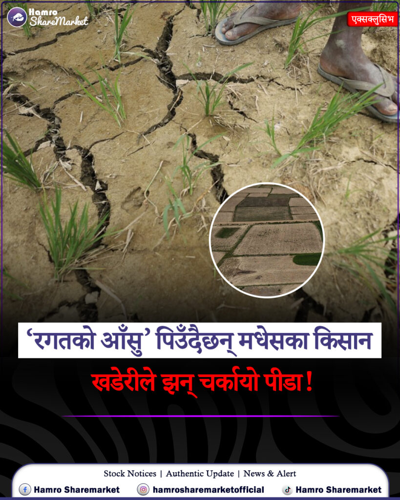 कहिल्यै नथाक्ने खेतबारीका मेहनती किसानहरू आज रगतको आँसु पिउन बाध्य छन्। मधेसमा पछिल्लो समय परेको भीषण खडेरी, सरकारी बेवास्ता र सिँचाइको चरम अभावले गर्दा कृषिमा जीवन अर्पने किसानहरूको पीडा चरम सीमामा पुगेको छ।